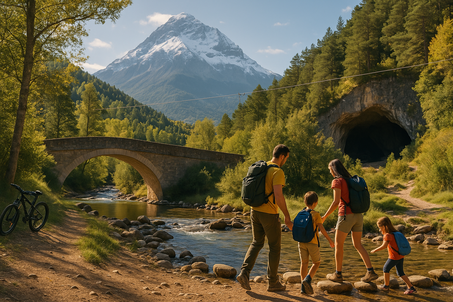 Si estás buscando qué hacer en Villanúa con niños, relájate. Has llegado al «campamento base» perfecto. A diferencia de otras zonas del Pirineo que pueden ser hostiles o logísticamente complicadas para ir con peques, Villanúa es, sencillamente, un parque de aventuras natural.